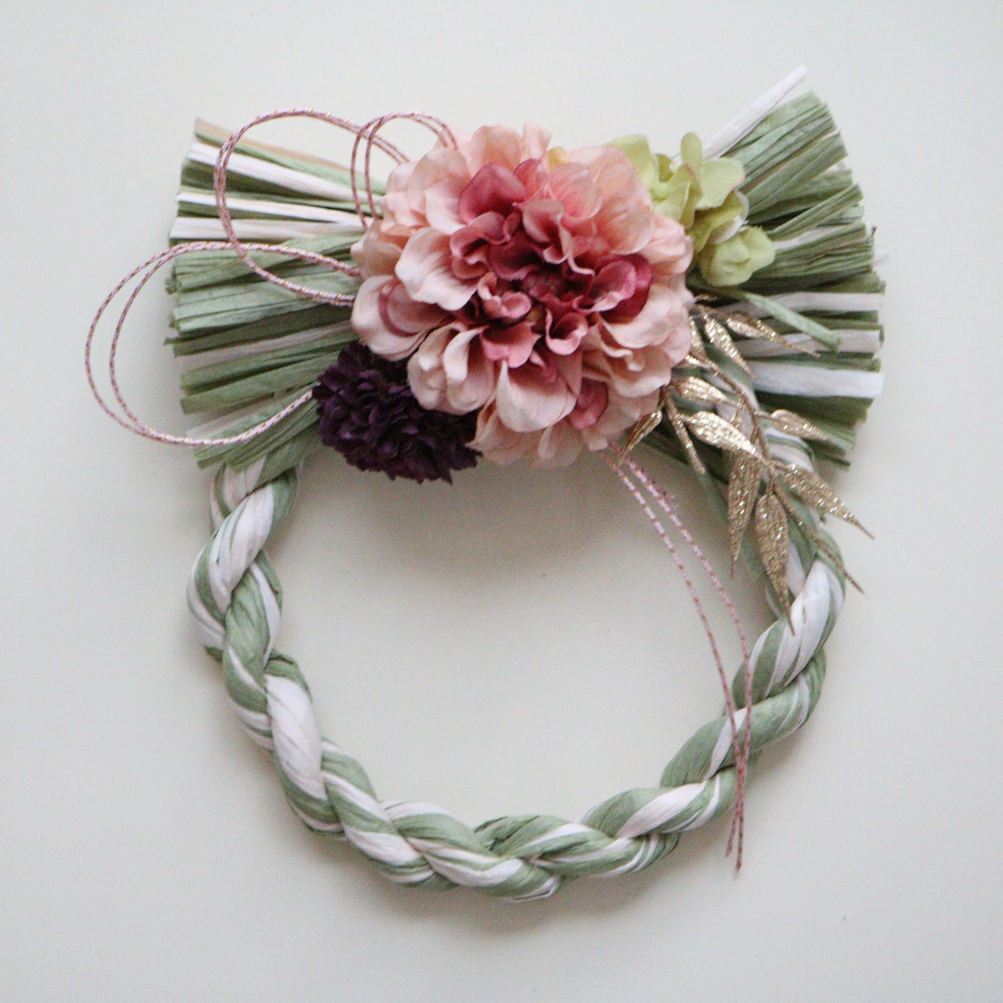 アンティークテイストが可愛い♪しめ縄飾り〈リース型・モーブピンク〉